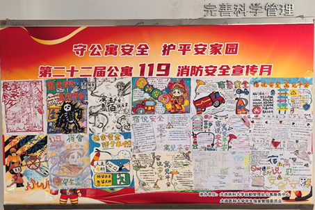 面向学生群体,公寓服务中心联合大连医科大学宿舍管理委员会发起活动。以“‘宿’说安全‘寓’见平安”为主题的创意海报征集活动中,同学们用漫画、插画、标语诠释安全理念,15幅优秀作品在四七广场展示,线上消防知识竞赛吸引了219名学生参与。11月6日,数百名学生在四七广场参与安全签名活动,以实际行动践行安全责任。